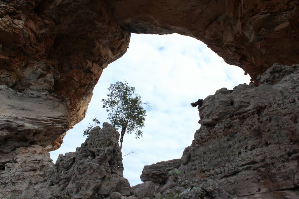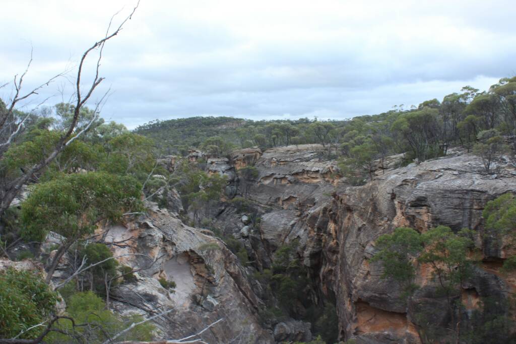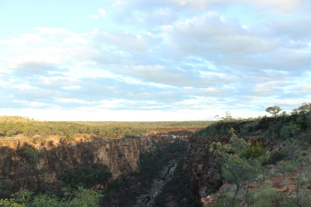 Headed onto White Mountains National Park near Torrens Creek. Was interesting, stopped into the pub and asked the old boy there about it cos after bumping into the ranger and Jol Flemming at Birdville and having a chat, Jol said access might be a bit tricky and the pub might have a key to get in. Anyway no key but there were two areas one with a formal camp ground but "nuthin up there" and another area that haven't been opened to the public but there is a Gorge there you could bush bash down to. Said that sounded interesting so the old boy drew us a map try to try find it. As it was getting late decided to go to the formal camp ground and stayed there the night. Had a bit of a poke round the next day but the old boy was right, there wasn't much up there! Ummed and arred about weather to check out the other area but decided to and glad we did. Was a pretty spectacular sandstone Gorge and spent hours climbing around and trying to get down into it. Was pretty cool even found some aboriginal artwork up there. Nice camping spot in the middle of nowhere too. Could of spent days exploring round there I reckon.