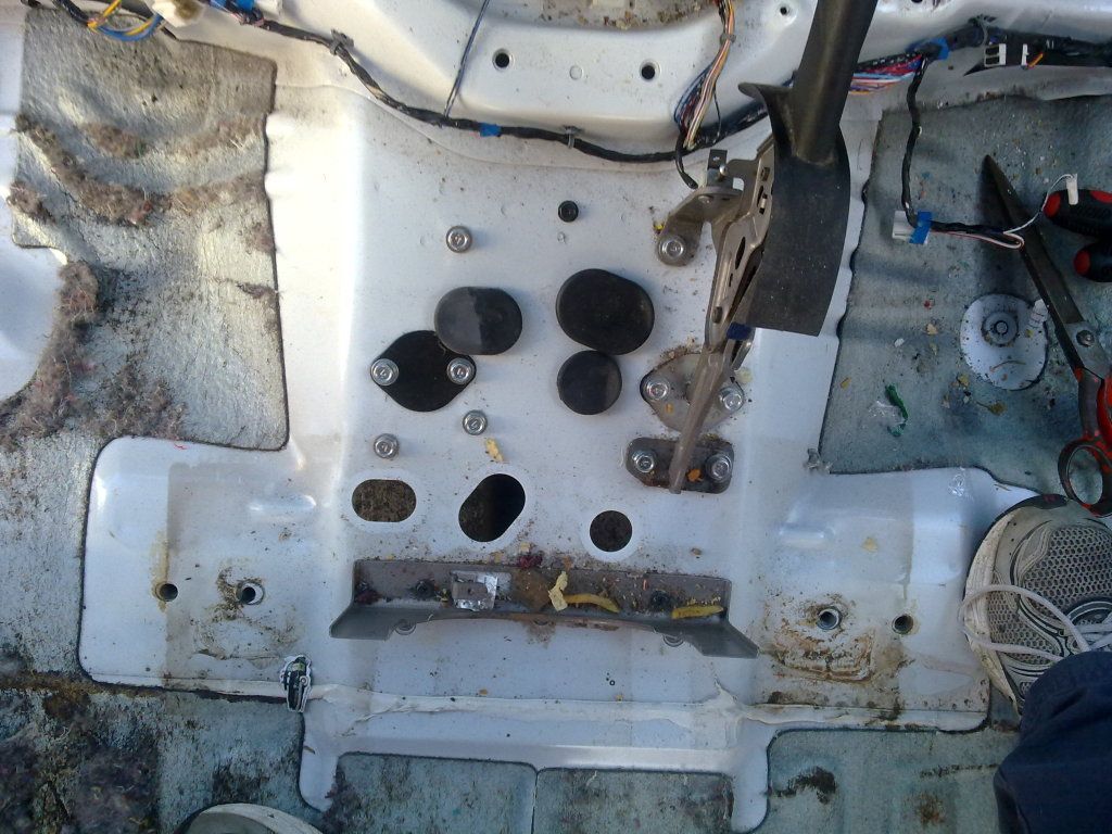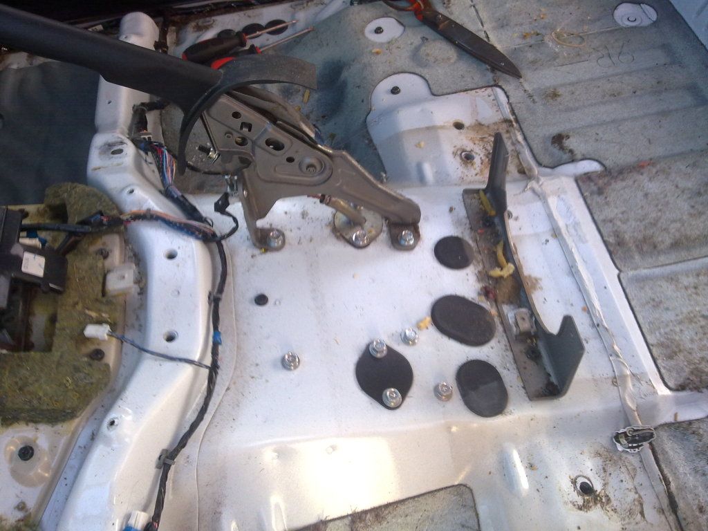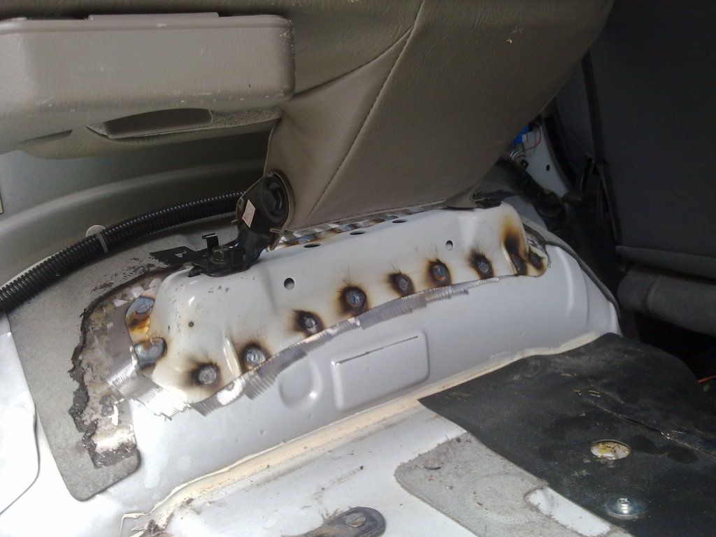 I had a friend weld in the seat mount with a Tig while i sat outside with a wet rag and put out the fires from the sound deading crap in the wheel arch