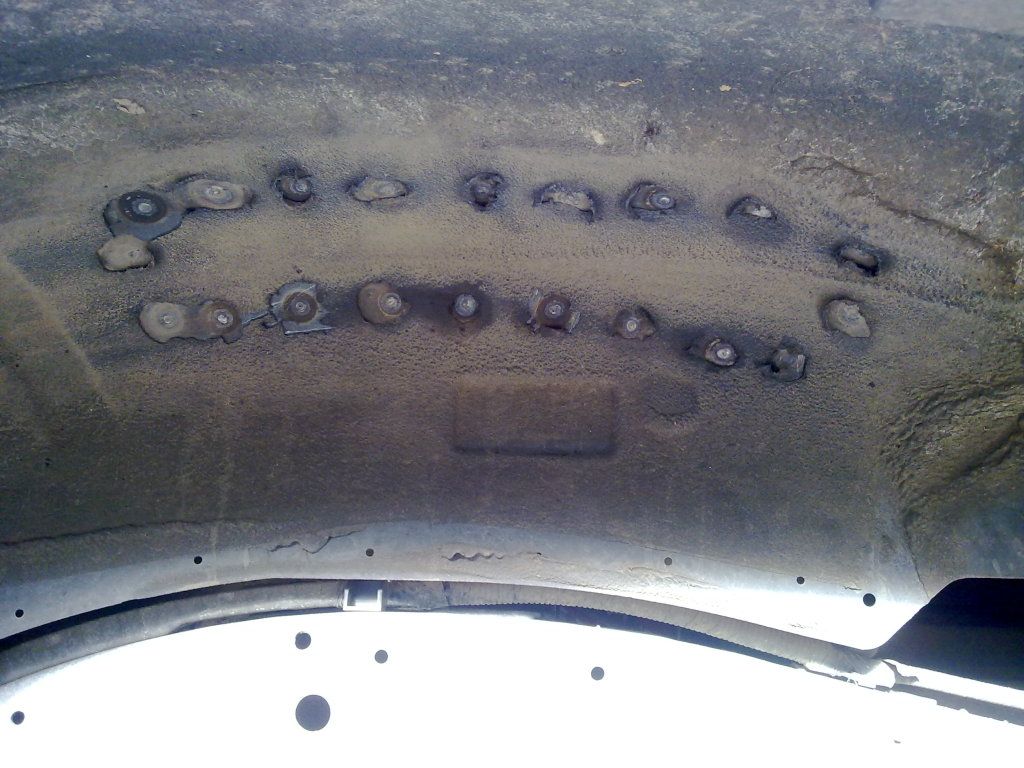 Right wheel arch with new sound deading NOTE fuel filler is behind the plastic when welding you will need to remove the plastic and watch hoses or place a wet rag over them