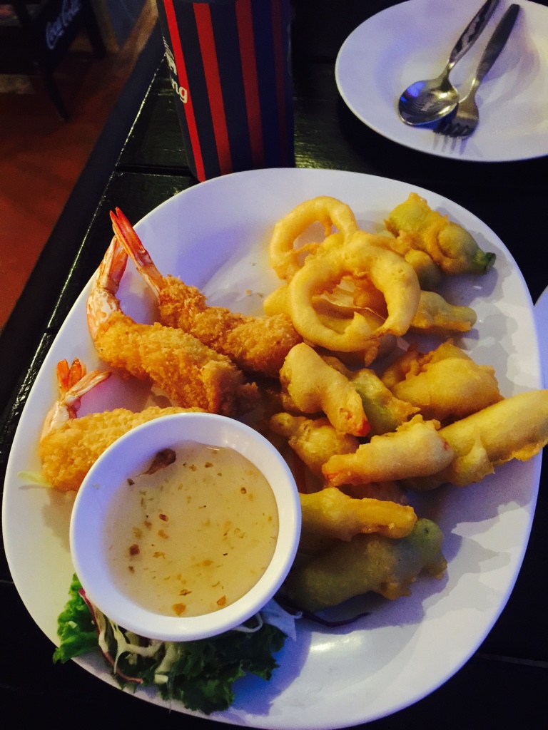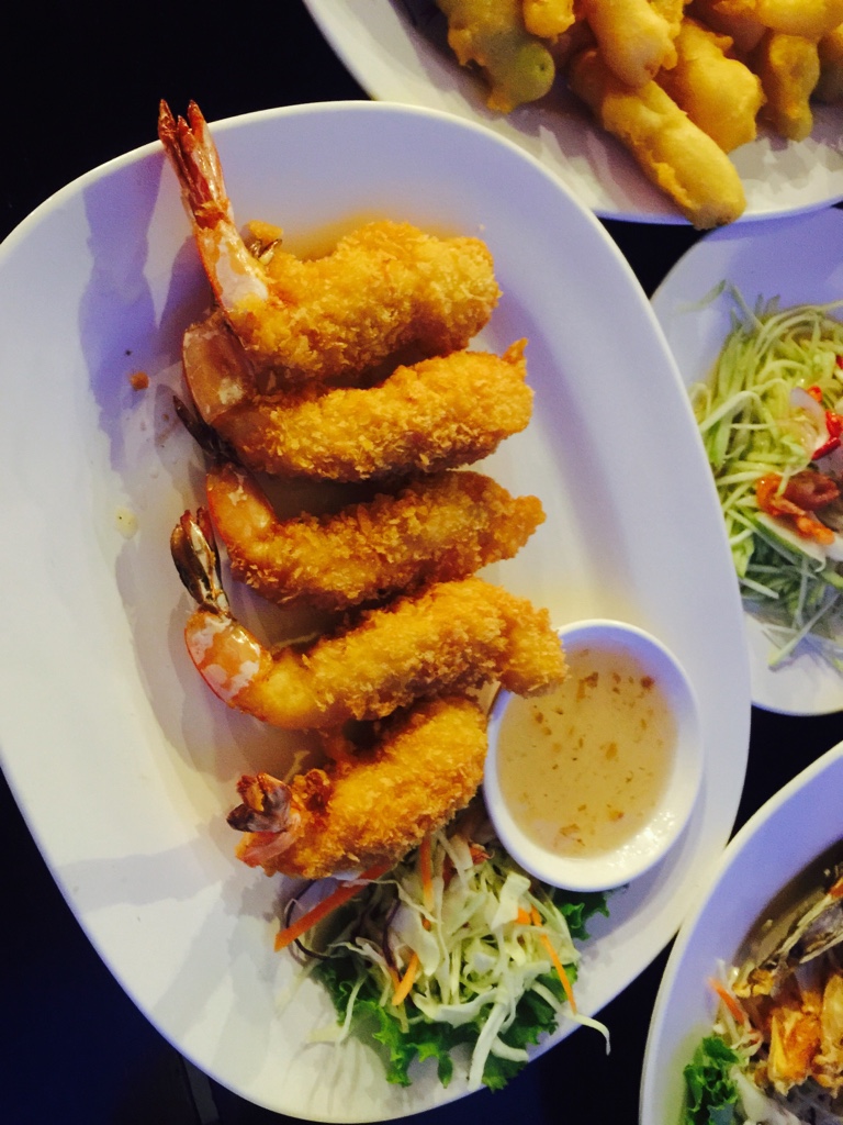 Tonight alllllllll seafood whole deep fried fish, soft shell crab, prawns (big bastards)