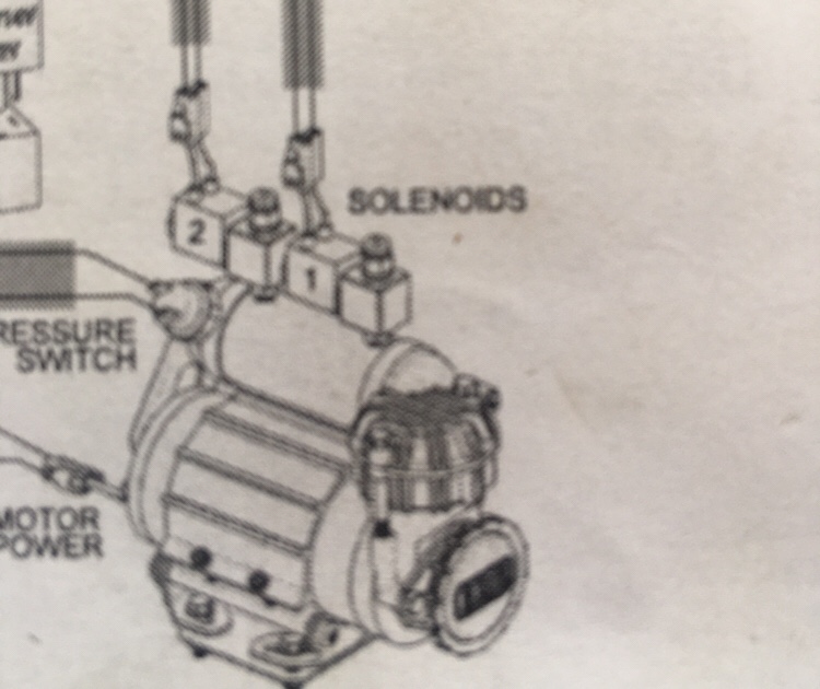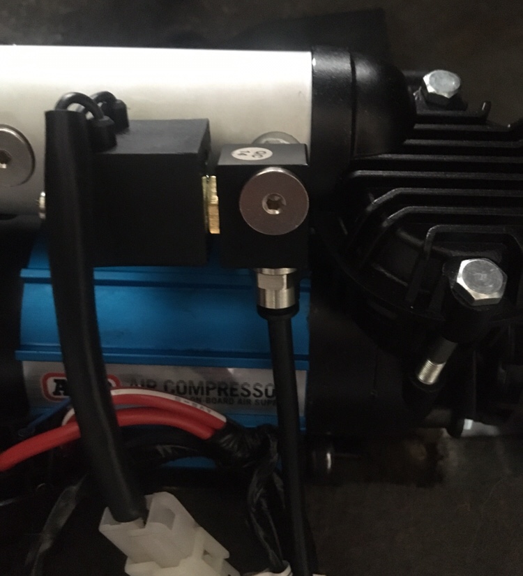 Shows the solenoid manifold mounted and air locking line running straight through.