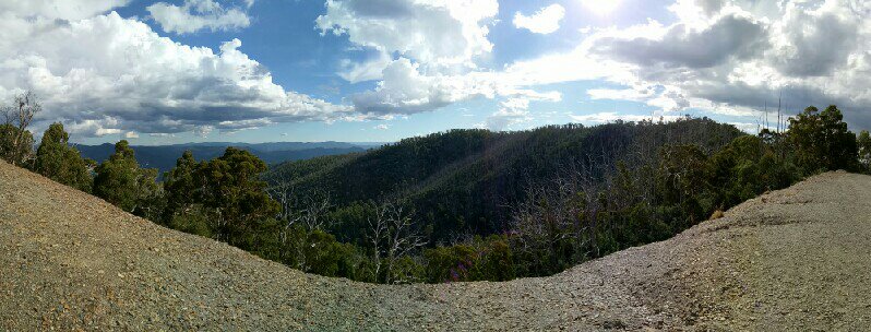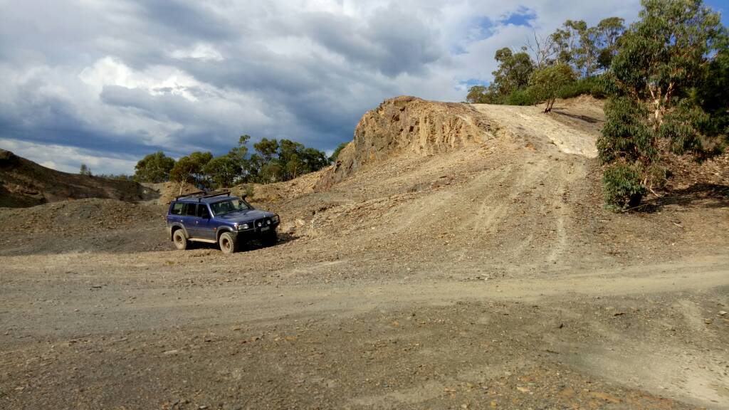 Yeah last stop for fuel is Mansfield. I can name a shipload of places out that way but with a Territory in tow, you are limited. Heres one for you John. A fun and quite easy drive for a single 4wd. At the T intersection I mentioned which takes you down to Fry's hut. The left turn 4wd track takes you to the slate mines. @Hodge has pic of this place. Good views from there.