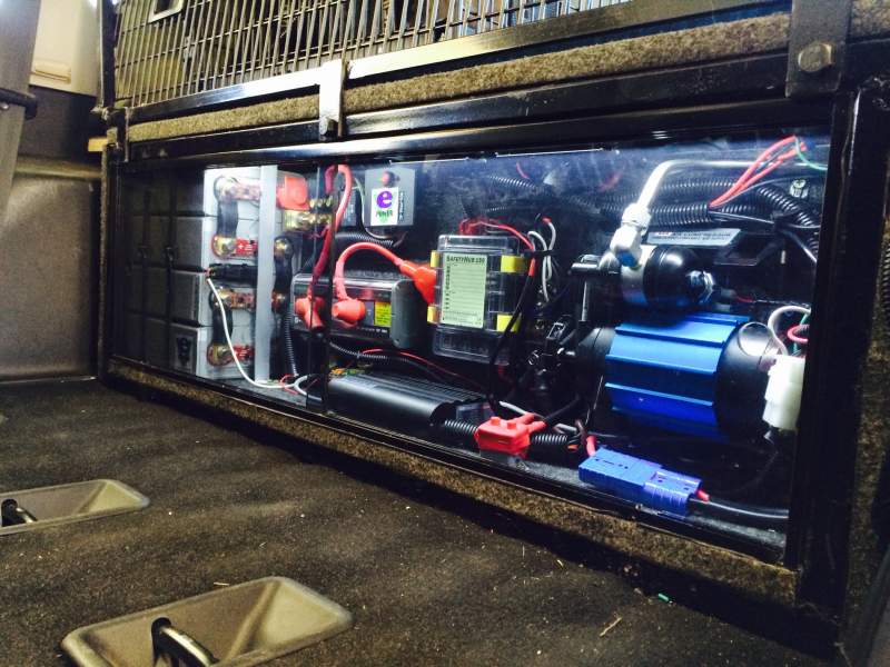 This was my set up in a previous vehicle, where I made a set of drawers with a cavity in front for the battery/charger/distribution block/compressor etc. I've gone a different route with the patrol and it's tucked away beside the drawers.