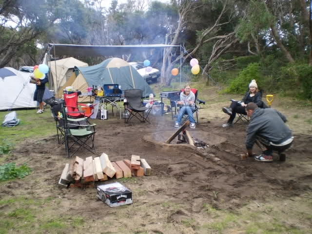Anyway, the camp site is a pearler. It was really large. There was 3 tents all up and they were all probably 6 man tents. We had 2 tents opposite each other, so the campsite was probably 5 meters wide and about 30-40 metres long. Easily fit 6 tents and 4-6 cars. We dug a nice fire pit in the camp site. There had been a few fires around but nothing really set up. We had a tarp set up in case it rained, all our food was under it. We just sat around the fire and drank piss.