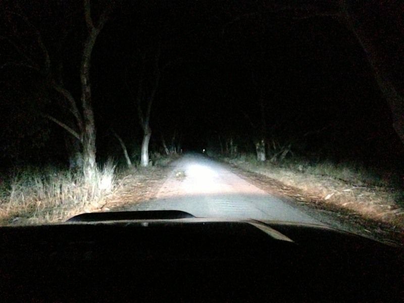 couldnt find a dark + long road to show full distance, but the HID spotties never seem to end
