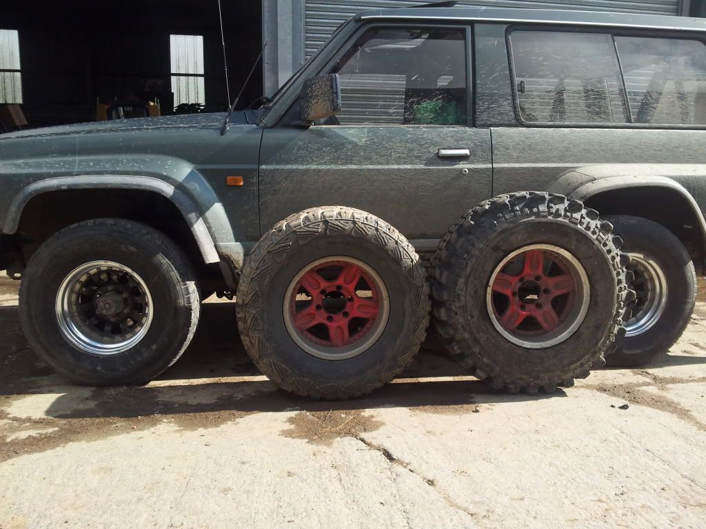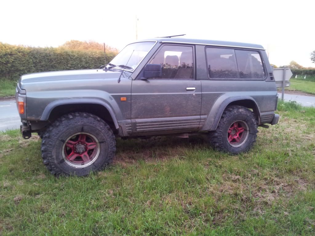 First job on my list was to get those ticky wee tyres off . I had some 33s on my old Terrano so put them on straight away. Better but not enough diff clearance yet , so I got some Simex 35 x 10.5 x 16s sorted. They're fitted on Toyota rally spec alloys