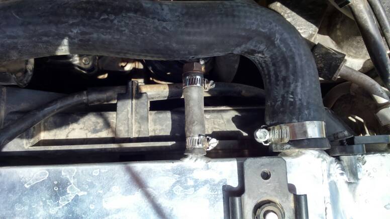 The radiator has two connections at the bottom for an auto trans cooler. The outlet that I blocked off is directly connected to the coolant (i.e. if I don't block it off, coolant comes out). I wondered if it was a coolant return line from the turbo (when fitted to a turbo diesel?
